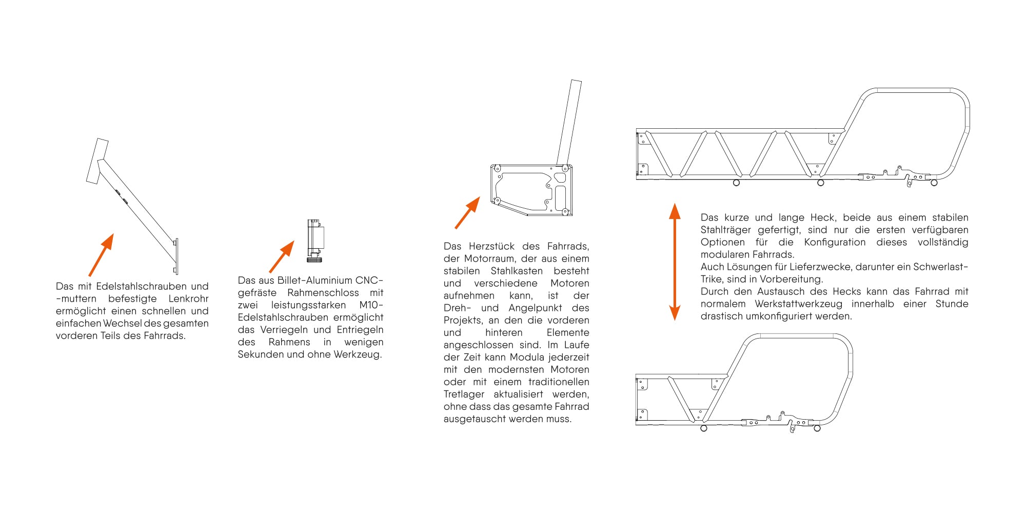 Dank des modularen Aufbaus kann der Nutzer zwischen verschiedenen Motoren wählen, darunter auch einem Nicht-E-Bike-Tretlager. Wenn sich die Technologie in neuen Schritten weiterentwickelt, ist Modula für schnelle und kostengünstige Updates bereit.
