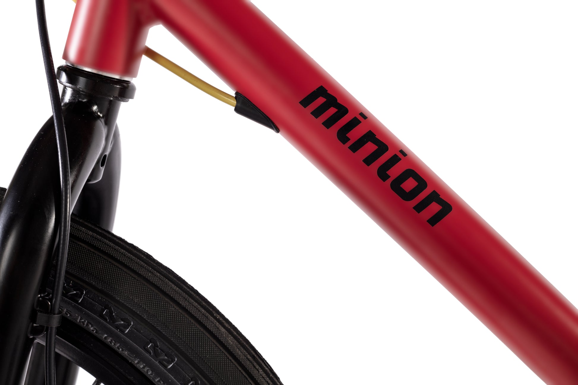 In this Easy Minion version: single speed; 140 mm disc brake calipers; magnesium wheels; balloon tires; all at a very affordable price.
